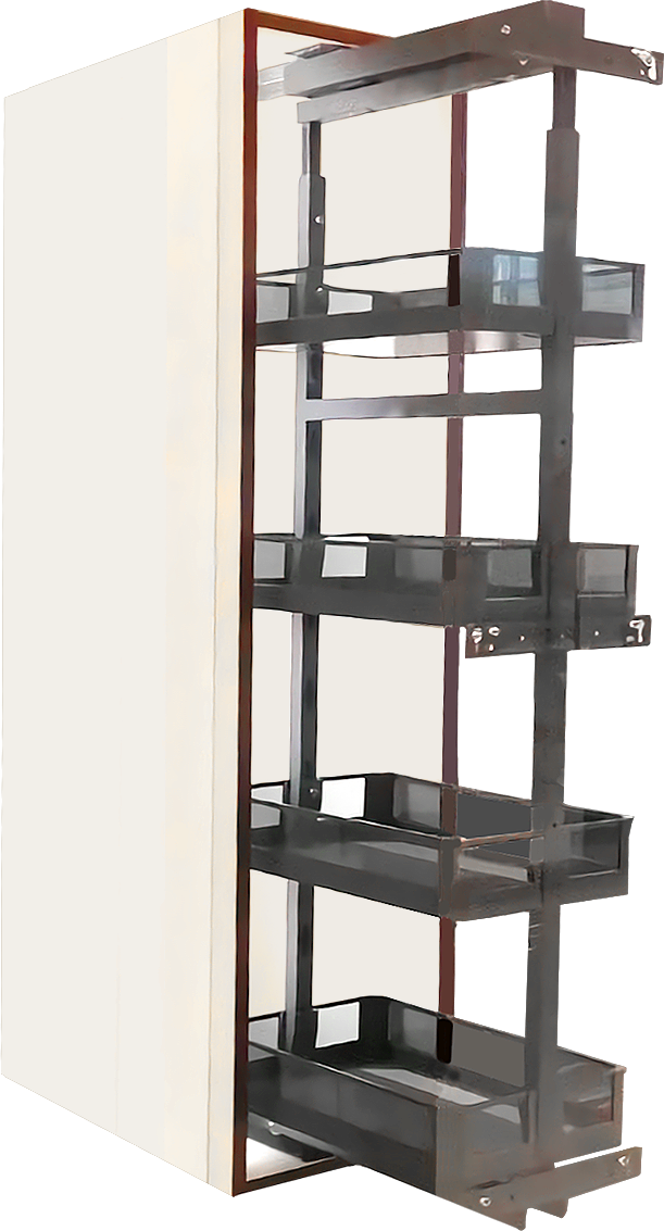 4-Layer Pull-out larders are a common feature in modern kitchens that are designed to be easy to use and accessible. They are a great addition to any kitchen, as they provide practical storage where the contents can be transported out of the unit and showcased on the multiple shelves.